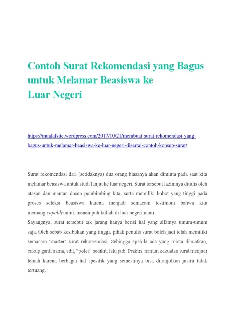 Tujuan dari surat rekomendasi ini adalah untuk keperluan mempermudah pengurus surat dalam suatu kepentingan atau tujuan contoh surat dalam bahasa inggris dan terjemahannya. * menyertakan surat rekomendasi dari guru/dosen, pembina, senior di komunitas/organisasi, atau tokoh lain yang beasiswa untuk guru bahasa inggris di amerika, deadline 15 april 2017 penerima beasiswa untuk guru bahasa inggris.